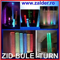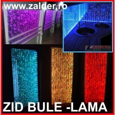 Panoul de bule este de fapt un vas din plexyglass cu inaltimi de la 80 la 250cm. Se disting trei tipuri constructive: ONE ( fara nici o rigidizare), GEO (cu rigidizoare in forme geometrice rotunde sau patrate) si LAMA (cu lamele rigidizoare din 6 in 6 cm), fiecare oferind jocul bulelor de aer luminate din lateral. PANOURILE DE BULE pot fi folosite ca element despartitor, vitrina, mascare sau blocare , sau, pur si simplu ca element decorativ sau corp de iluminat arhitectural, in camere de zi, bucatarii, holuri, sali de asteptare, spatii de recreere, terase, cluburi, baruri, camere multisenzoriale. Sunt un decor deosebit pentru sali de evenimente si nunti, ca fundal al proaspatului cuplu. Jocul si combinatia AER APA LUMINA le face un accesoriu de nelipsit pentru CAMERELE MULTISENZORIALE .